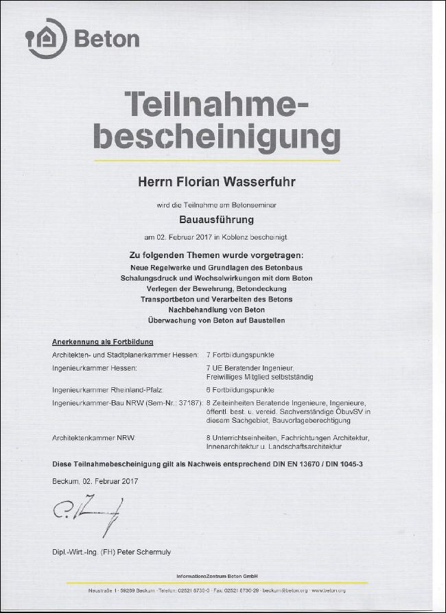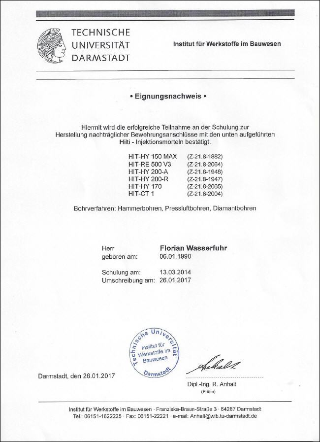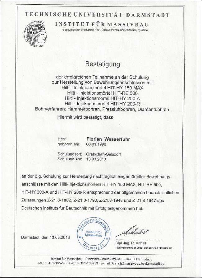 ![]() Florian Wasserfuhr Technischer Baustellenbetreuer |
