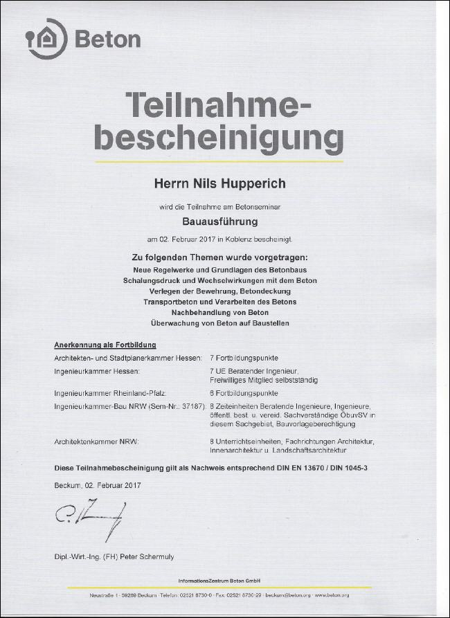 ![]() Nils Hupperich Technischer Baustellenbetreuer |