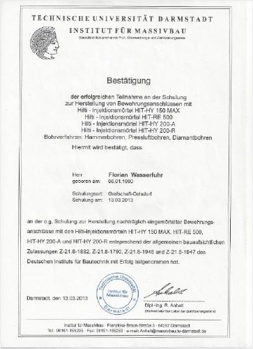 Vor der Betriebsgründung, war ich langjähriger Mitarbeiter (24 Jahre) des mittlerweile geschlossenen Ingenieurbüro für Grundwasserabdichtungen Bosold. Viele der ehemaligen Kunden haben uns auch in der selbständigen Tätigkeit weiterhin die Treue gehalten und können Ihnen unsere Fachkompetenz sicherlich bestätigen.