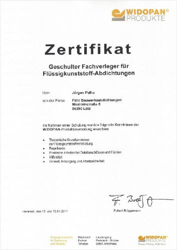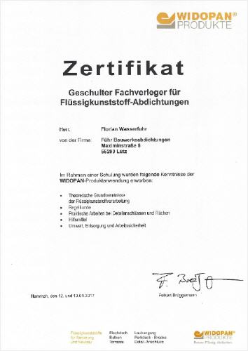 Die Firma Führ Bauwerksabdichtungen ist ein Betrieb, welcher von Berthold Führ, 55 Jahre geleitet wird. Der Firmensitz ist in 56290 Lütz, welches in einem Seitental der Mosel in der Verbandsgemeinde Treis-Karden liegt.