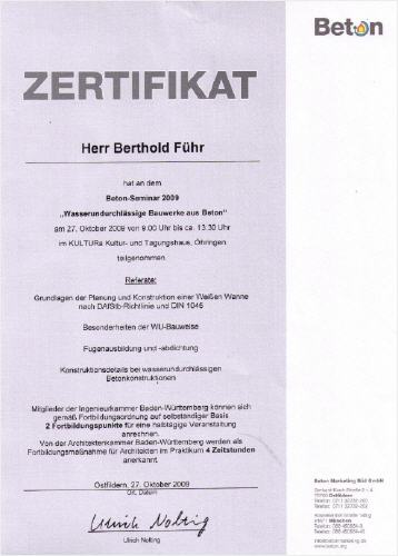 Wir beraten Sie gerne schon bei der Planung und auch während der Bauphase, welche elementaren Details Sie bei einem Druckwasserdichten Bauwerk aus Beton achten müssen. Ganz egal, ob Sie privater Bauherr sind, Bauträger, Bauunternehmer oder Architekt - wir sind für Sie vor Ort und kontrollieren und beraten den jeweiligen Rohbauunternehmer hinsichtlich der fachgerechten und fachkompetenten Ausführung seines Bauwerks.